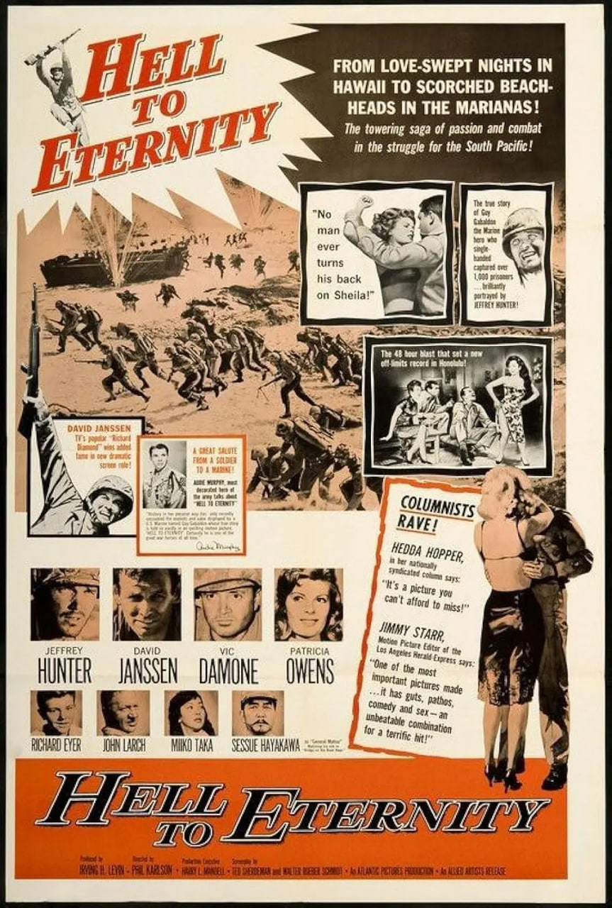 盖伊(杰弗里·亨特 Jeffrey Hunter 饰)在很小的时候就失去了双亲,孤苦伶仃的他被一个美日混合的家庭收养了,就这样,他拥有了两个拥有美国血统的哥哥。在这样的环境中长大的盖伊,同时精通日语和英语。战争爆发了,盖伊的父母因为他们的血统原因被送进了国际收容所,而他的两个哥哥则作为美国公民参了军,被派往欧洲作战。盖伊因为日语好,被美国海军陆战队招为翻译。美军发动了攻打被日军占领的塞班岛的战役,盖伊也随军出征,眼看着周围的好友们一个又一个的倒在了炮火之中,盖伊感到非常的痛心。他向上级申请,希望上级能够派自己去日军处劝降,避免不必要的伤亡。